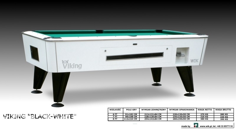 Žetónový biliardový stôl Viking White je určený pre komerčné využite do reštaurácií, pivární, barov, hotelov a herní. Rám stola je zaoblený a vyrobený z hliníka pre lepšiu odolnosť voči poškodeniu. Žetónový mechanizmus je odolný a spoľahlivý. Vhadzovač/mincovník na žetóny alebo Eurá.